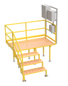 Pódium. A mérleget kezelő operátor számára kialakított pódium biztonságtechnikailag megfelelő korláttal kialakítva. Kényelmes lehetőséget kínál a zsákok töltésére és új zsákok felhellyezésére.